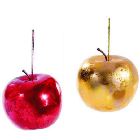 mele decorative con nastrino per appendere oro e rosso effetto lucido