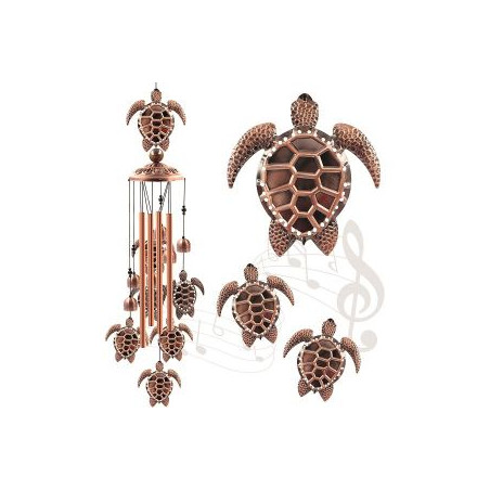 CAMPANA 4 TUBI E 7 FIGURE TARTARUGA COLOR BRONZO L. 88CM.