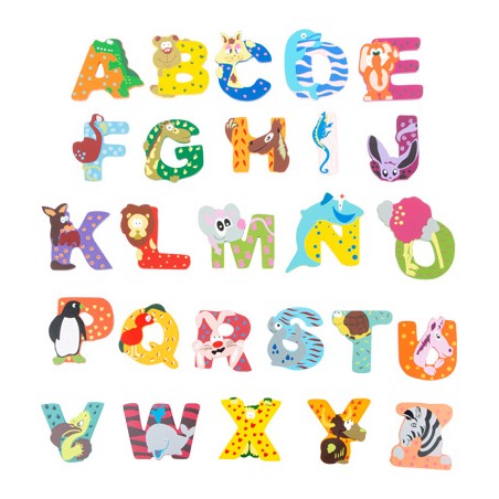 LETTERA ALFABETO CON ANIMALI IN LEGNO